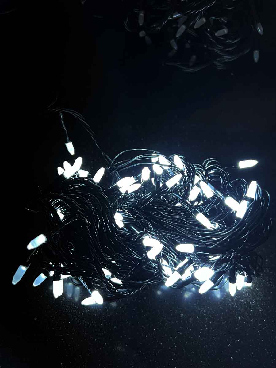 Kabal je dužine 9 metara, u crnoj boji. Niz sadrži 100 LED lampica i 8 različitih programa osvetljenja.