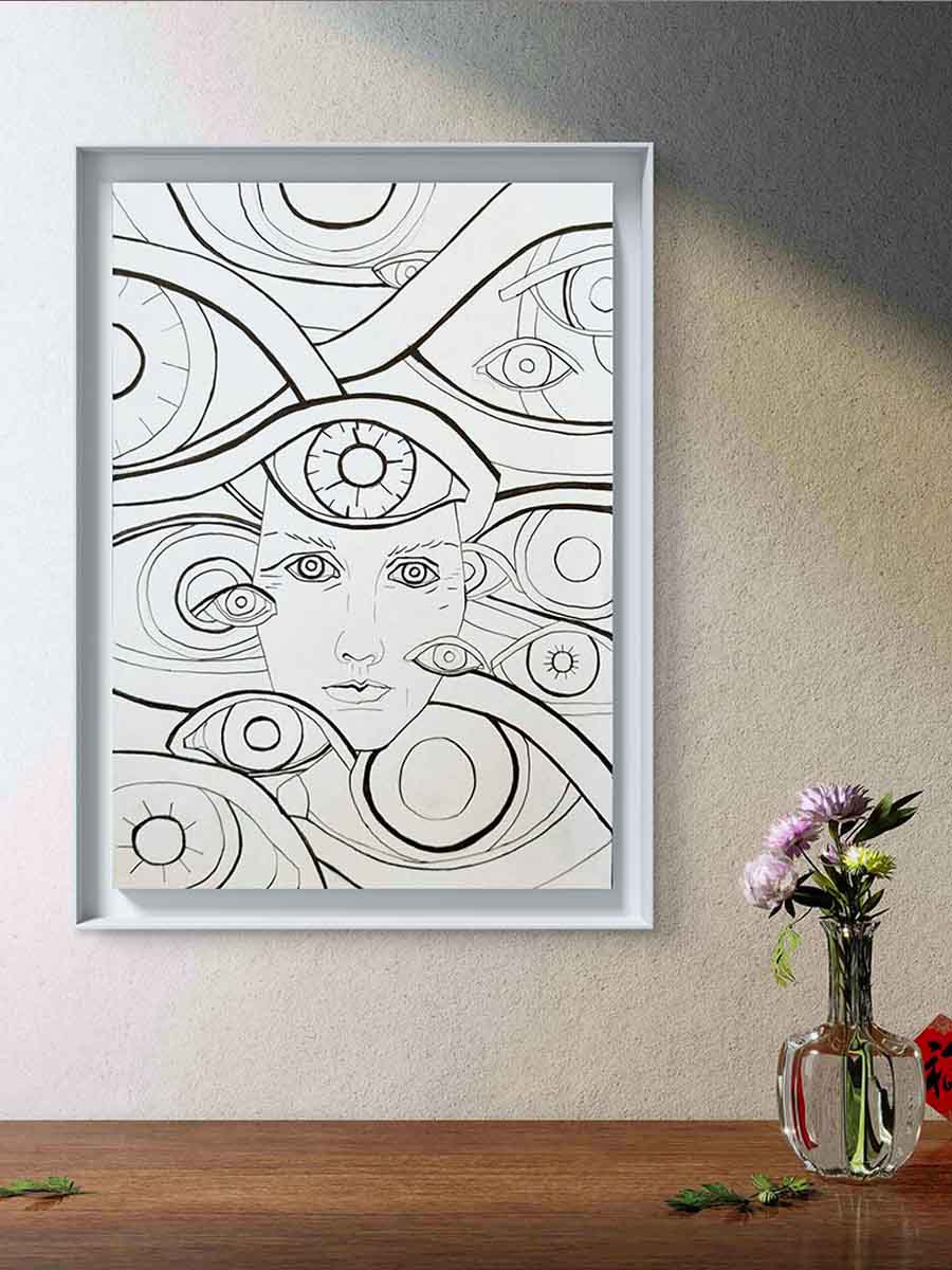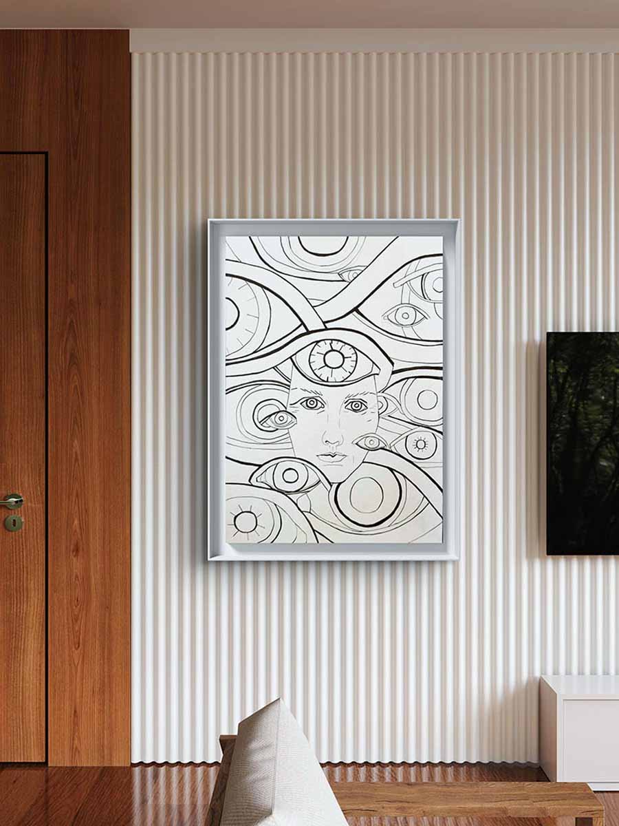 Kompozicija očiju simbolizuje svest, intuiciju i složenost unutrašnjeg sveta – umetnički rad koji privlači pažnju i ostaje u mislima.