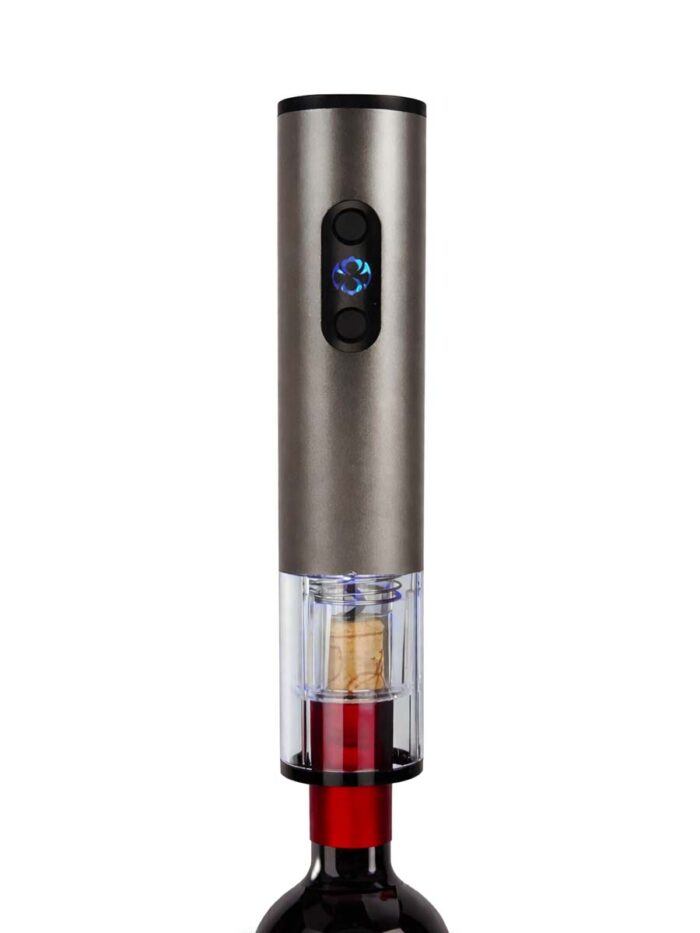 Električni otvarač za vino omogućava brzo i jednostavno otvaranje boca za svega 6–8 sekundi. Izrađen od brušenog aluminijuma, sa elegantnim plavim LED osvetljenjem koje se aktivira tokom upotrebe, spaja savremenu tehnologiju i moderan dizajn. Jedno punjenje omogućava otvaranje do 80 boca. Kompatibilan je sa većinom standardnih vinskih boca, a u pakovanju je uključen i sekač folije.