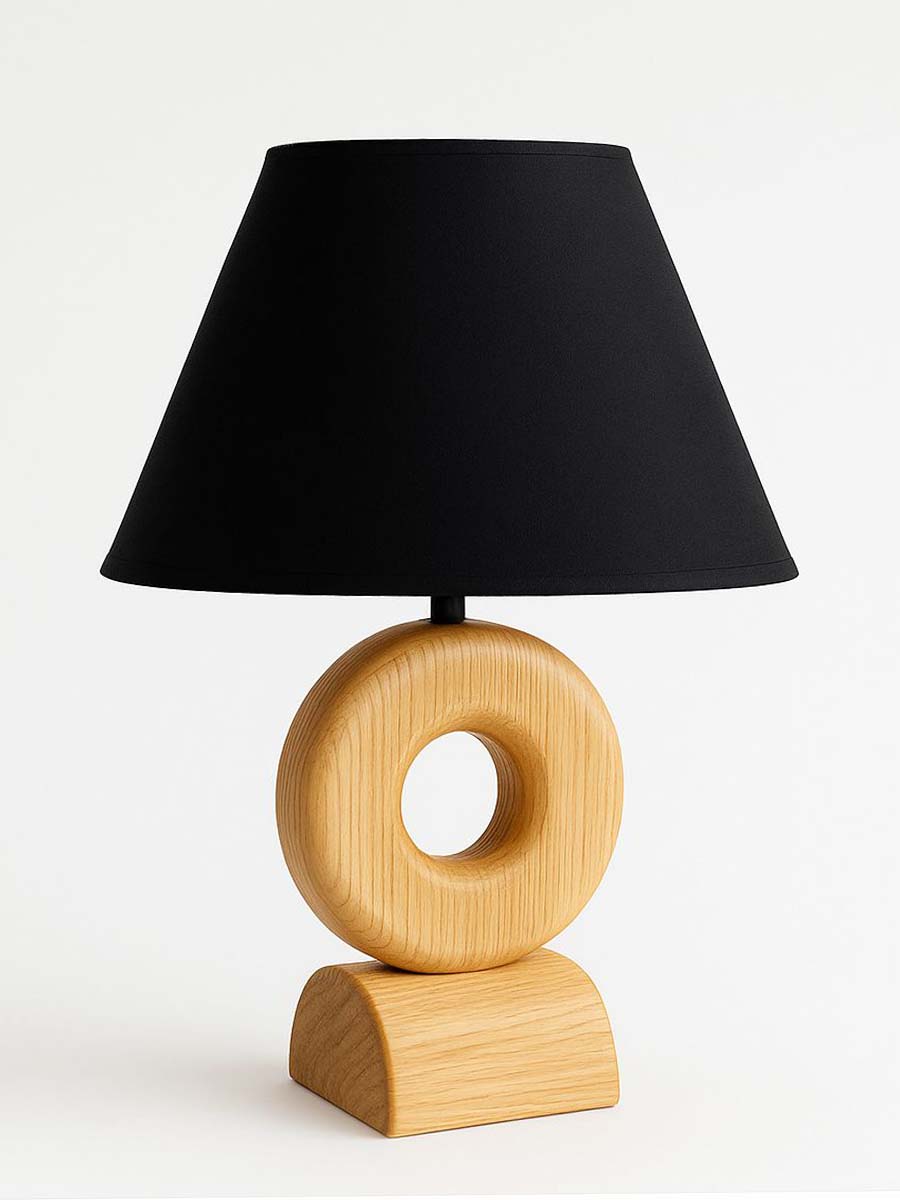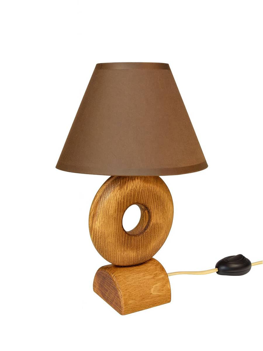 Materijal: postolje od hrasta, kružni deo od jele, štedljiva sijalica E14, 3W