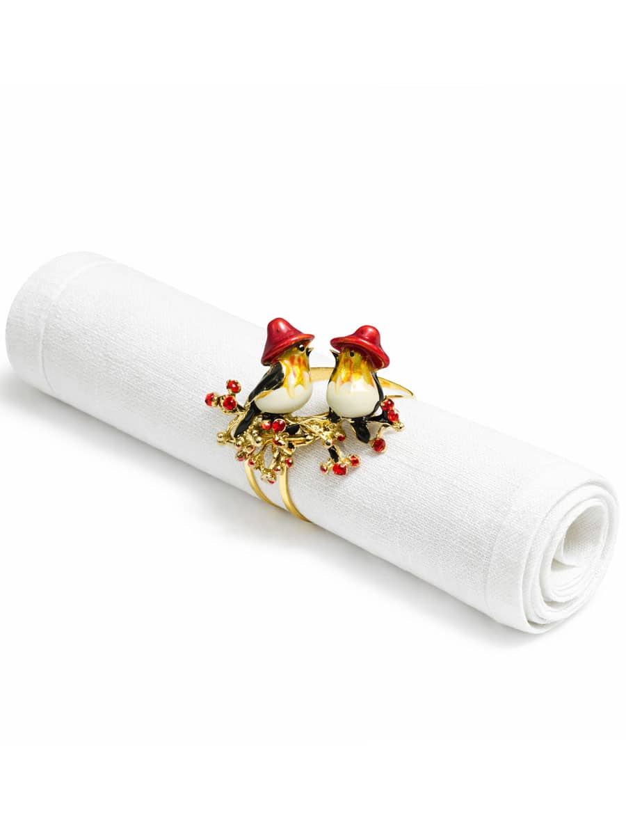 Prsten za salvetu sa motivom dve ptice simbolizuje ljubav, zajedništvo i harmoniju. Pažljivo oblikovan i bogato dekorisan, ovaj elegantni detalj unosi toplinu i sofisticiranost u dekoraciju stola. Idealan je za svečane trpeze, porodična okupljanja i praznične prilike, gde svojim značenjem i izgledom dodatno naglašava atmosferu bliskosti i posebnih trenutaka.