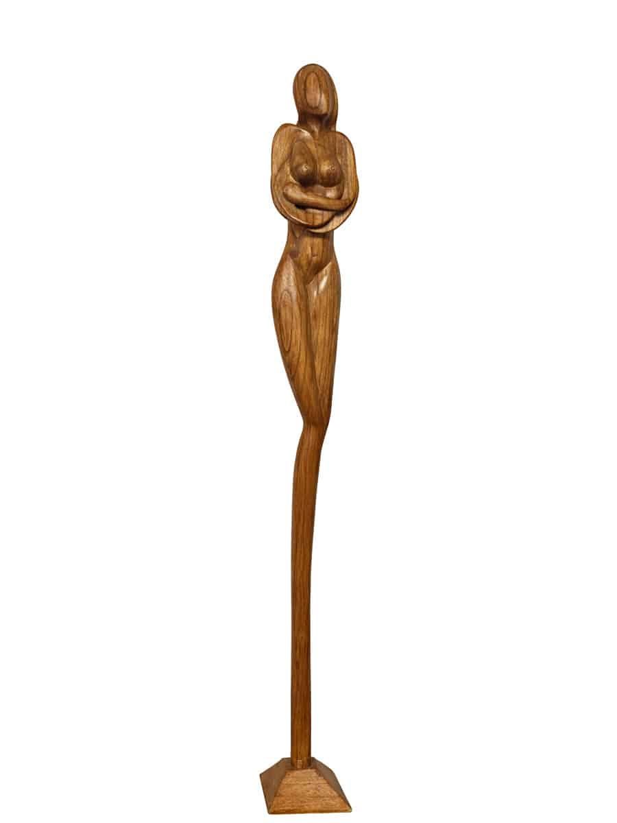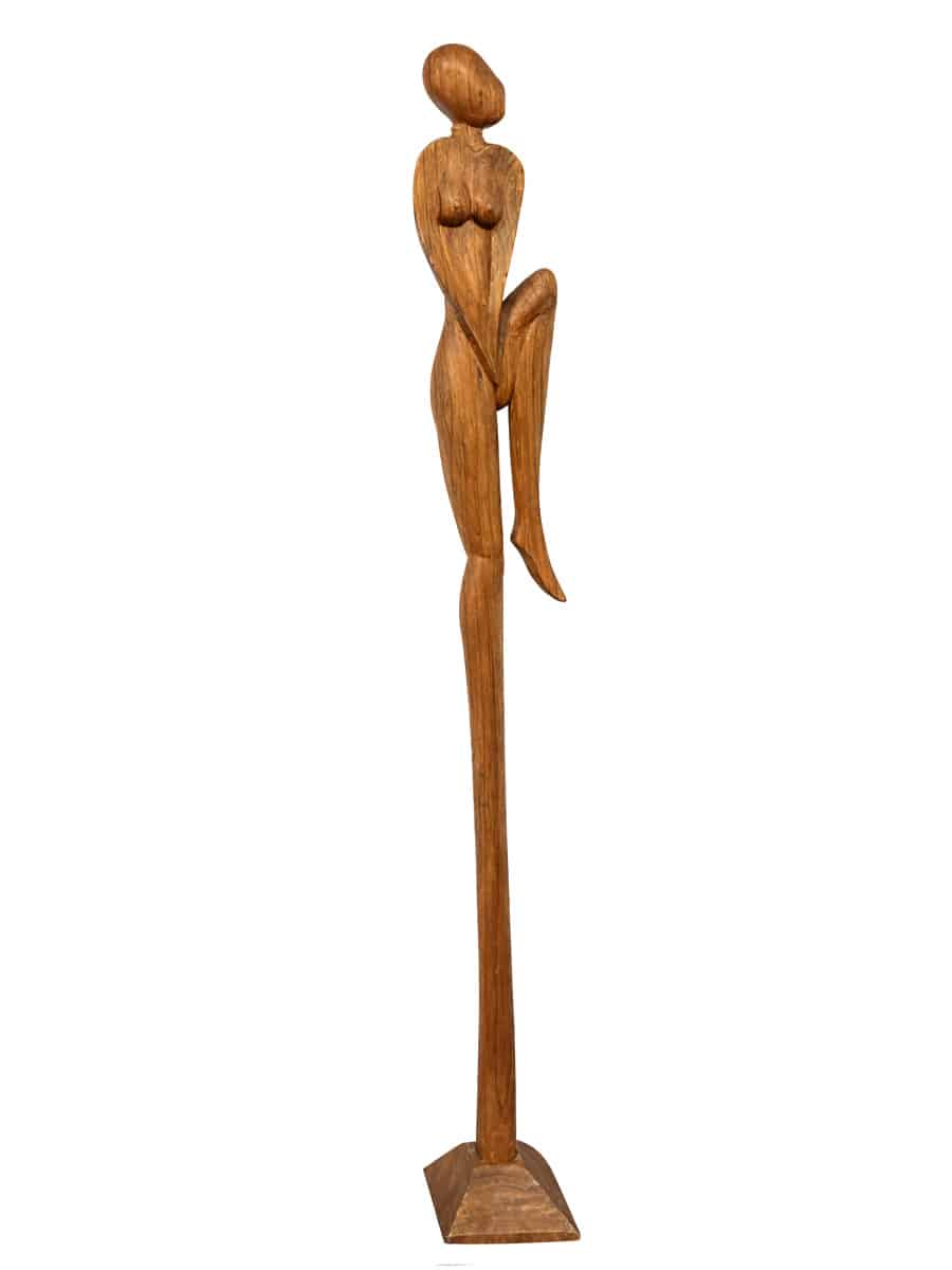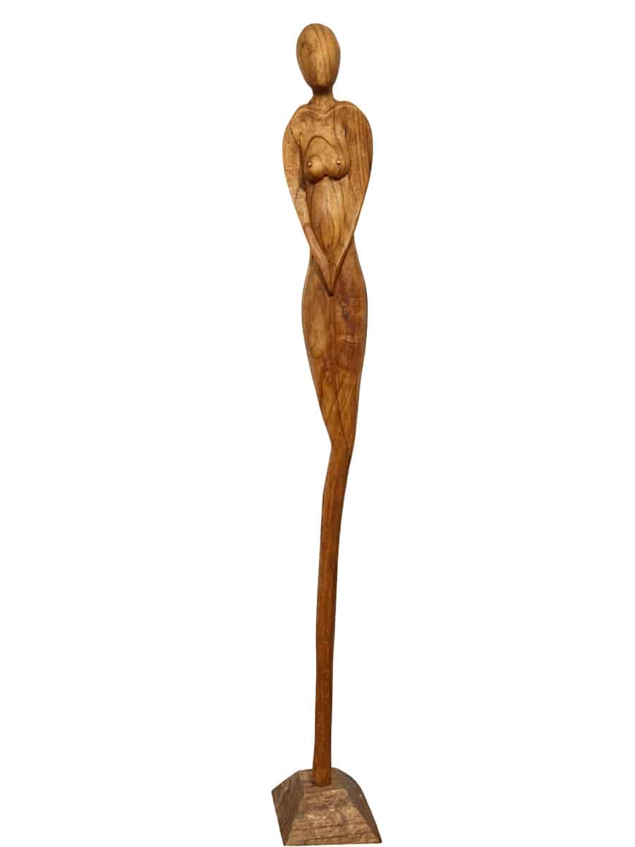 Skulptura NANDA, ručni rad majstora sa Balija. Izrađena iz jednog komada tikovine koji oduzima dah svojom visinom dok njena elegancija dolazi do izražaja. Detaljan rad otkriva finesu drveta, čineći je ne samo podnom figurom već i izuzetnim ukrasom na niskim policama i komodama, unoseći osećaj gracioznosti i jedinstvenosti u prostor.