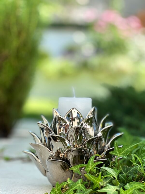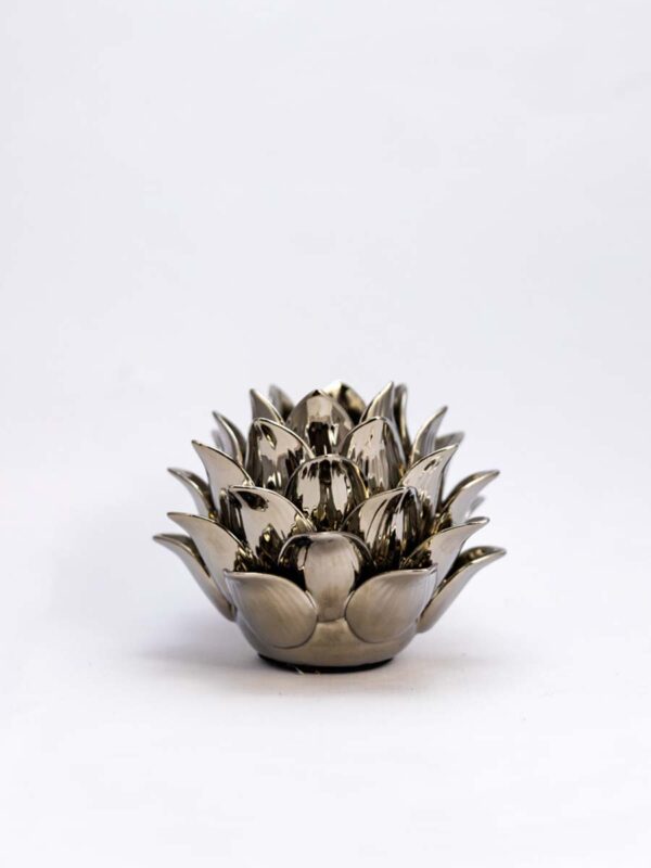 Kralj slonova koji se prikazuje s ponosno uzdignutom glavom u veličanstvenoj gracioznosti. Slon sa podignutom surlom predstavlja uspeh. U produžetku njegove surle je visoki deo za sveću koji naglašava kraljevski dizajn ove životinjske figure. Svaki deo je unikanat i ručne je izrade. Slobodno je možemo nazvati i skulpturom jer ona ne predstavlja samo svećnjak. Krasiće svaku policu a u većernjim satima dobičete dozu romantike.