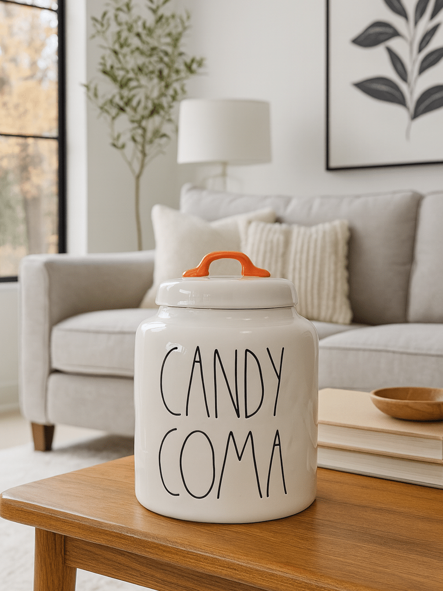 Tegla Candy Coma, velika keramička tegla sa poklopcem, ručno oblikovana i glazirana. Kombinuje funkcionalnost i humor u čistoj, minimalističkoj formi. Namenjena za slatkiše, ali i za sve male rituale svakodnevice.